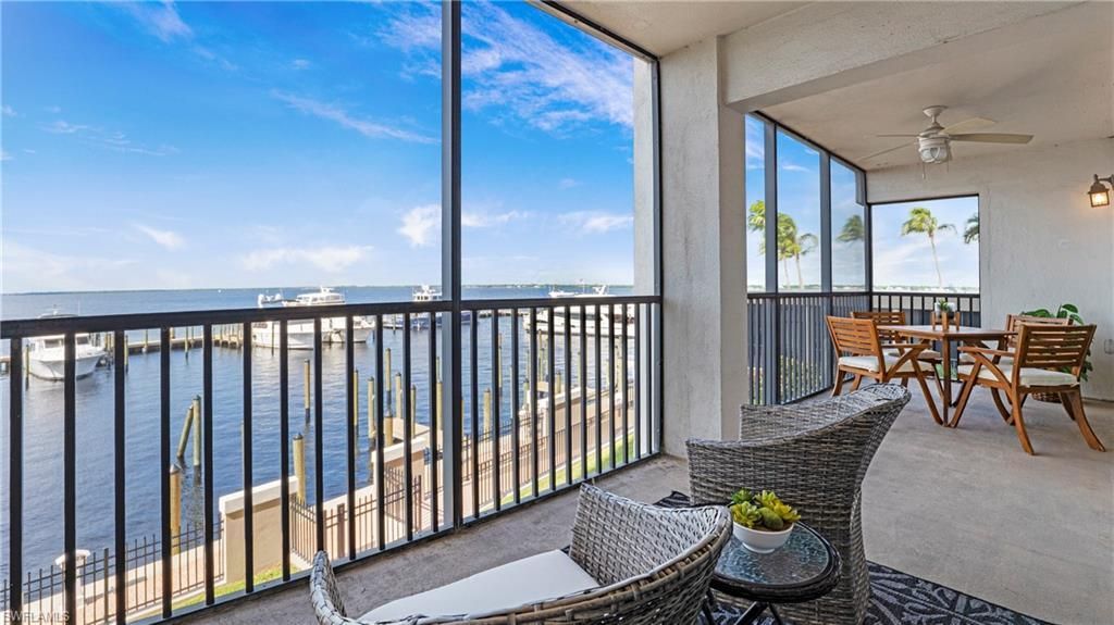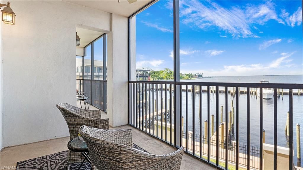 Come experience this beautifully updated 3-bedroom, 2-bath second-floor condo in the highly sought-after community of Pointe Royale. From your private lanai, you'll enjoy breathtaking river and sunset views with no other buildings in sight-just a perfect backdrop of water, sky, and boats at the marina. You may even spot dolphins right outside your window!Inside, the kitchen and bathrooms have been fully renovated with real wood cabinetry and high-end finishes, creating a timeless, elegant look. ...Come experience this beautifully updated 3-bedroom, 2-bath second-floor condo in the highly sought-after community of Pointe Royale. From your private lanai, you'll enjoy breathtaking river and sunset views with no other buildings in sight-just a perfect backdrop of water, sky, and boats at the marina. You may even spot dolphins right outside your window!Inside, the kitchen and bathrooms have been fully renovated with real wood cabinetry and high-end finishes, creating a timeless, elegant look. Thoughtful touches, like a built-in bookcase for your treasures, add warmth and character to the space. Hurricane windows and doors provide safety and energy savings.The location couldn't be better. Step outside and walk to downtown events including free riverfront concerts, art walk, music walk, and professional theatre. Everyday conveniences are close at hand too, with a grocery store, pharmacy, and a wide variety of restaurants just steps away.Pointe Royale offers unmatched amenities, including 24-hour guarded security-the only community downtown with this level of peace of mind-plus a secure parking garage, tennis and pickleball courts, a state-of-the-art fitness center, fishing pier, card room, pet walk area, car wash station, and a stunning heated pool overlooking the river.Discover the very best of the Florida lifestyle in one of Fort Myers' premier communities-schedule your visit today!